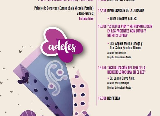 Adeles es la asociación de personas con Lupus de Álava. Trabajamos sin ánimo de lucro y con un único objetivo: “Generar salud ayudando a crecer y desarrollarse como personas a un colectivo que tiene en común convivir con el Lupus”. Si quieres hacerte socio/a o tienes cualquier duda, ponte en contacto con la Asociación.